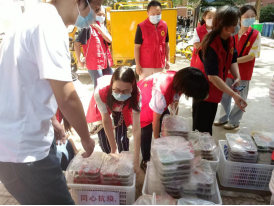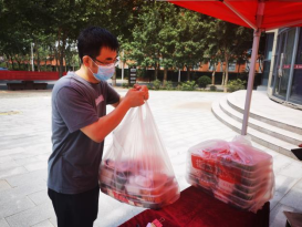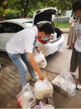 领导带头,教工志愿者、学生志愿者一起为各个宿舍静默管理期间的学生送饭,共计送餐2614份。