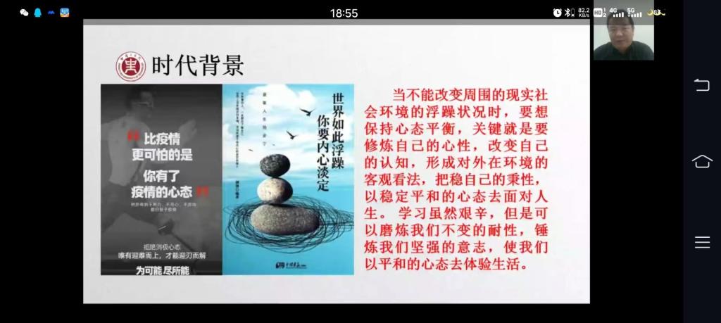 副院长陶建格以大学生如何在不满意中成长为题,以企业微信直播的形式为Doujins