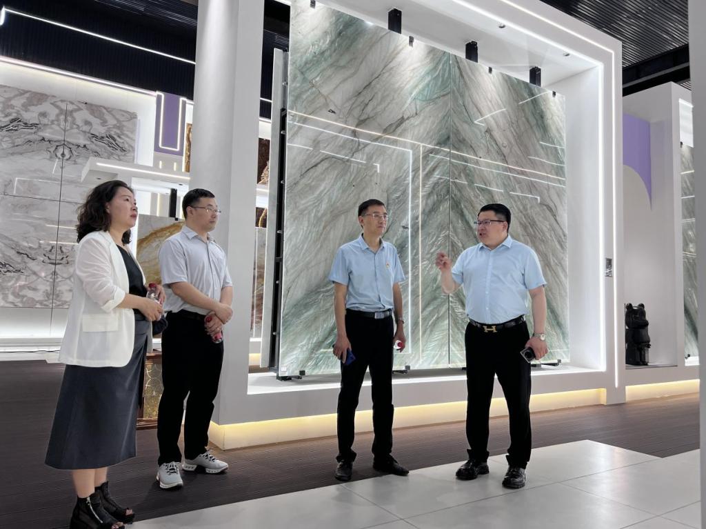 众合(郑州)国际石材产业园总经理杨通带领李向东参观了宏星石材集团(郑州)公司,走进车间,实地察看了企业原材料生产加工、机器人技术创新成果、环境保护新技术应用、仓储管理优化等情况。了解了企业发展运行和对人才就业需求等情况。随后李向东一行来到众合(郑州)国际石材产业园党群服务中心,详细了解了公司在非公党建方面取得的一系列成果,双方就人才培养、产教融合、学生实习就业等方面进行了充分交流,并达成初步合作意向。