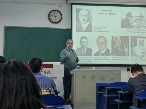 师生开展了四场关于物流与供应链的研究生课程讲座,Hans-Haasis教授介绍了物流供应链领域的学术研究方向以及物流供应链管理的研究成果,分享了德国物流领域现状以及对供应链领域的独到见解。讲座吸引了广大师生积极参与,师生们与Hans-Haasis教授深入交流,学术氛围浓厚。在校访问交流期间,汉斯教授一行在孙学军教授陪同下参观了河南省智慧物流国际联合实验室并就实验室建设达成合作意向。