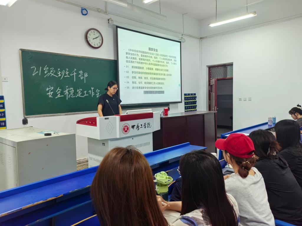 各年级学生干部安全教育工作会议由各年级专职辅导员主持,内容涉及宿舍消防安全、意识形态安全、防范电信诈骗、实验室安全、端午节假期及暑期安全教育提醒,结合全国第23个“安全生产月”活动,在2023级中开展“绘制一张应急避险逃生路线图”评比活动,着力营造“人人讲安全、个个会应急”的浓厚氛围。