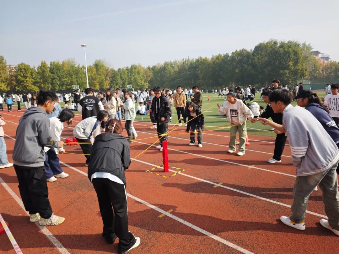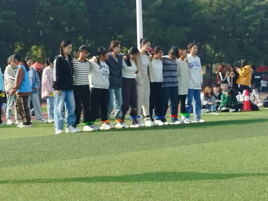 不倒森林:同学们屏息凝神,目光专注,默契行动,比赛难度十足,让围观的同学们不禁为他们捏了一把汗。十人九足:相邻队员的腿绑在一起,大家步伐一致,相互扶持,坚定地向着终点迈进。腰缠万贯:随着布条转动,同学们迅速地交接,不断引来观众的喝彩。呼啦圈接力:大家转动着呼啦圈,向终点跑去,为了不使呼啦圈落地使尽浑身解数,现场欢笑声与欢呼声不断。