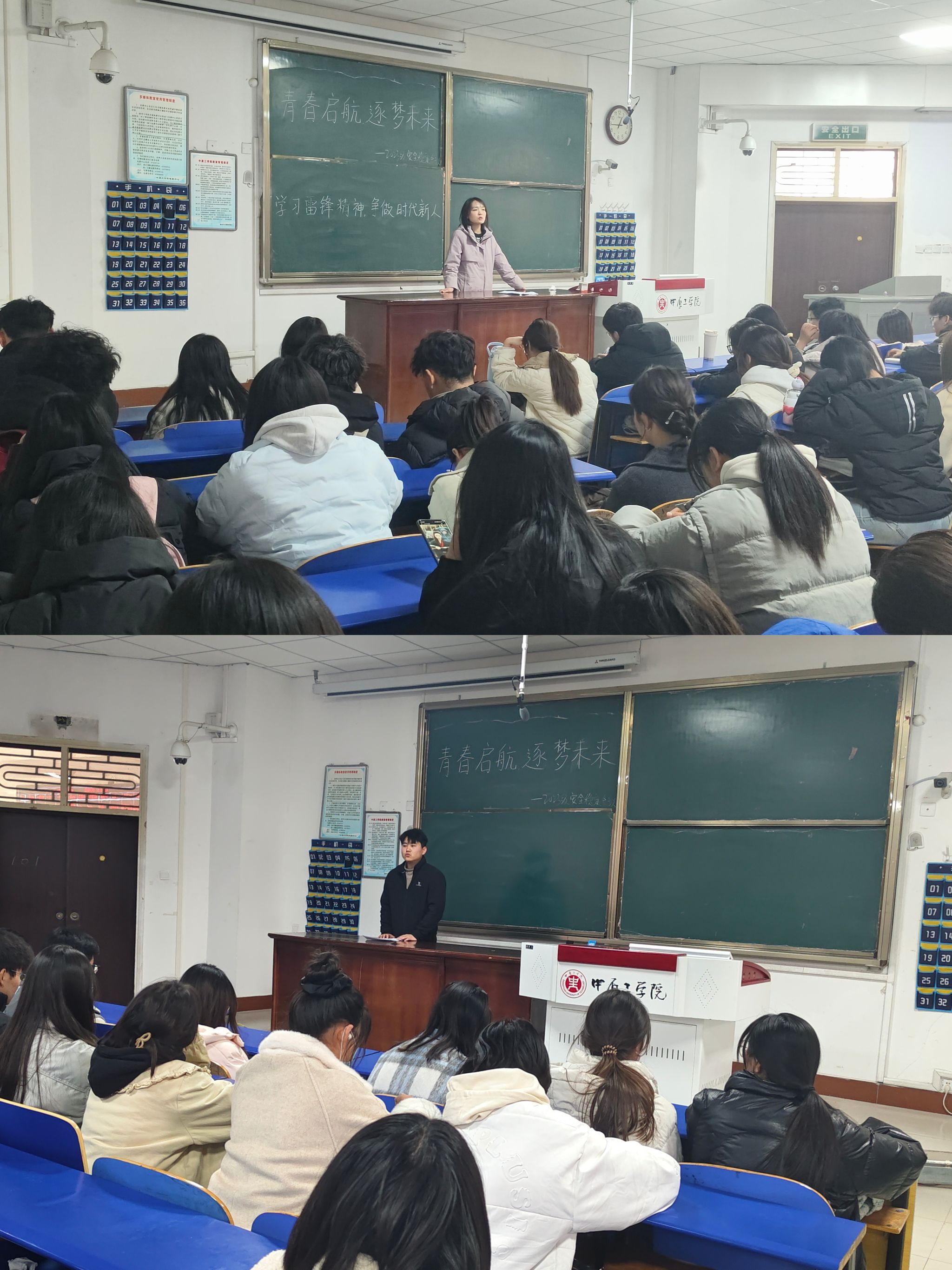 紧接着,23级以“青春启航,筑梦未来”为主题开展学生干部会议。辅导员段瑞婕、张志远不仅从宿舍安全、网络安全、宗教政策、心理健康等多方面入手,筑牢学生的安全防线,更引导学生立足当下,放眼未来,制定科学合理的学业与职业规划,为青春梦想插上翅膀。