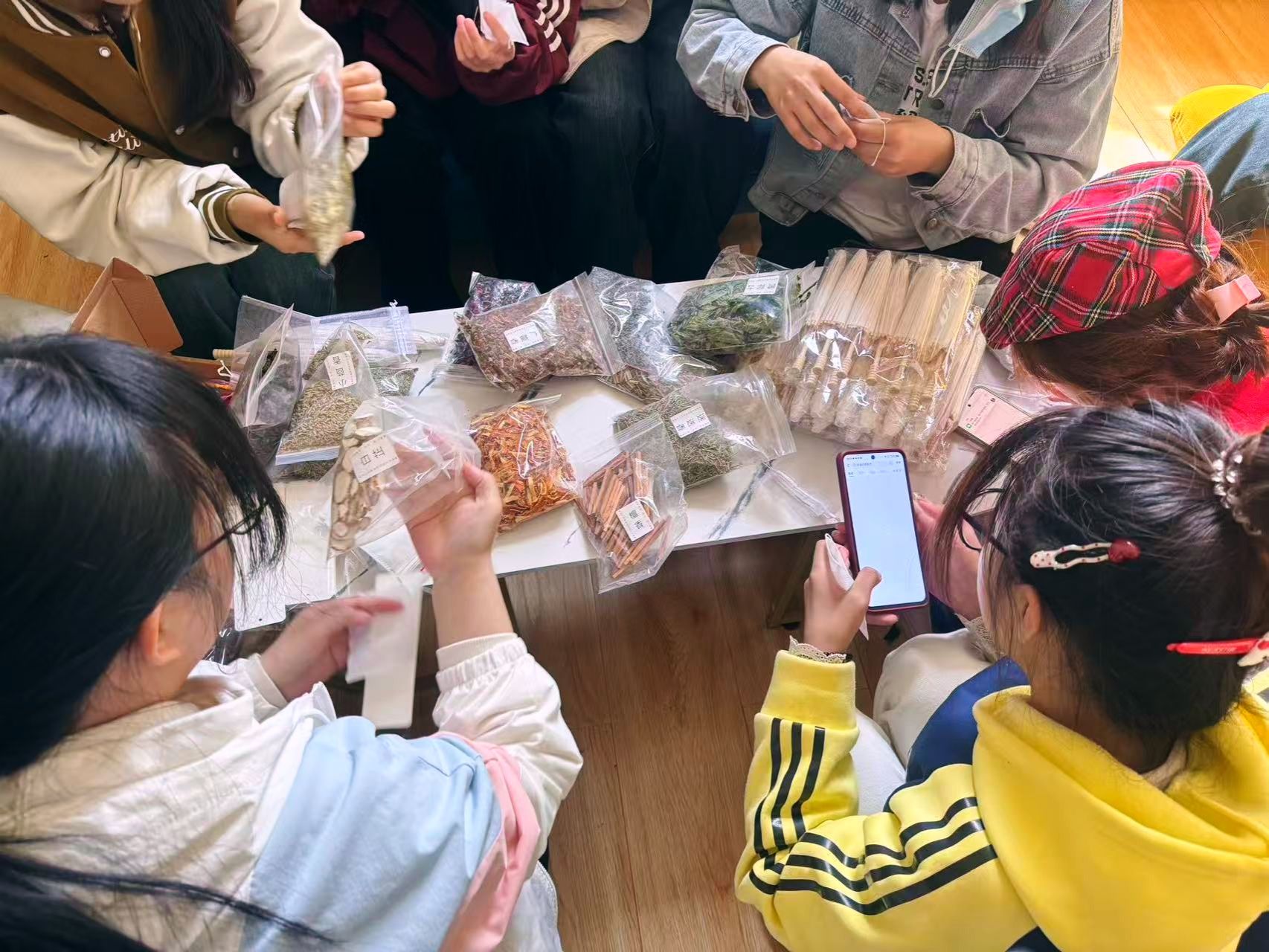 艾草悠悠,芬芳满袖。活动现场准备了香包和香料,将干花、香草散发着自然香气的植物被装入香包。同学们亲手制作具有驱虫辟邪寓意的香囊,感受传统习俗的魅力,让这份独特的香气伴随自己度过美好的春日时光。