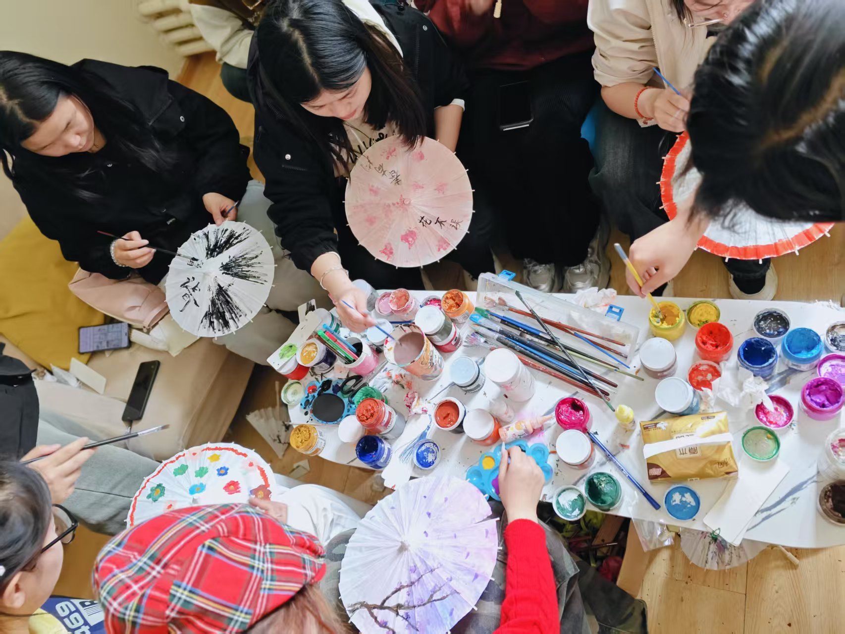 撑起一把油纸伞,仿佛走进了诗意的清明画卷。活动为大家准备了空白油纸伞、颜料和画笔,同学们尽情发挥创造力,在伞面上绘制富有独特创意的图案,填写优美的诗句。当一把把独一无二的油纸伞在手中诞生,仿佛也将清明的诗意与浪漫定格。
