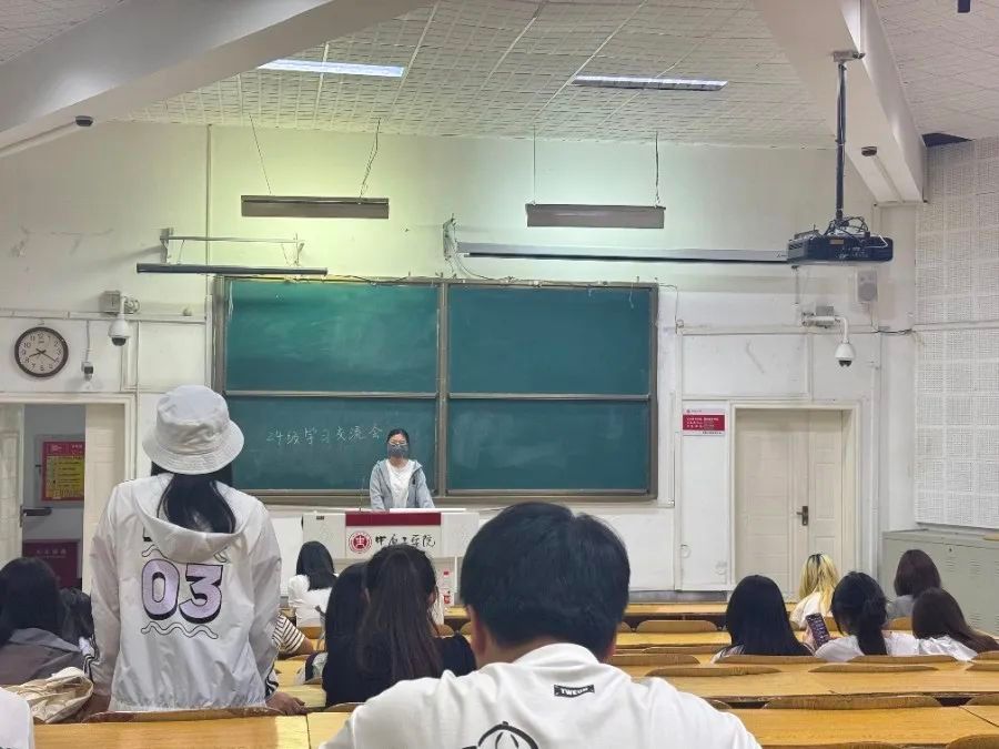 在晚自习教室举办了2024级学生学习经验分享会。会议由2024级辅导员郭姗、周怡、张玲玲、王恩博老师主持,各专业优秀学生代表担任分享嘉宾,2024级学生全体参与。