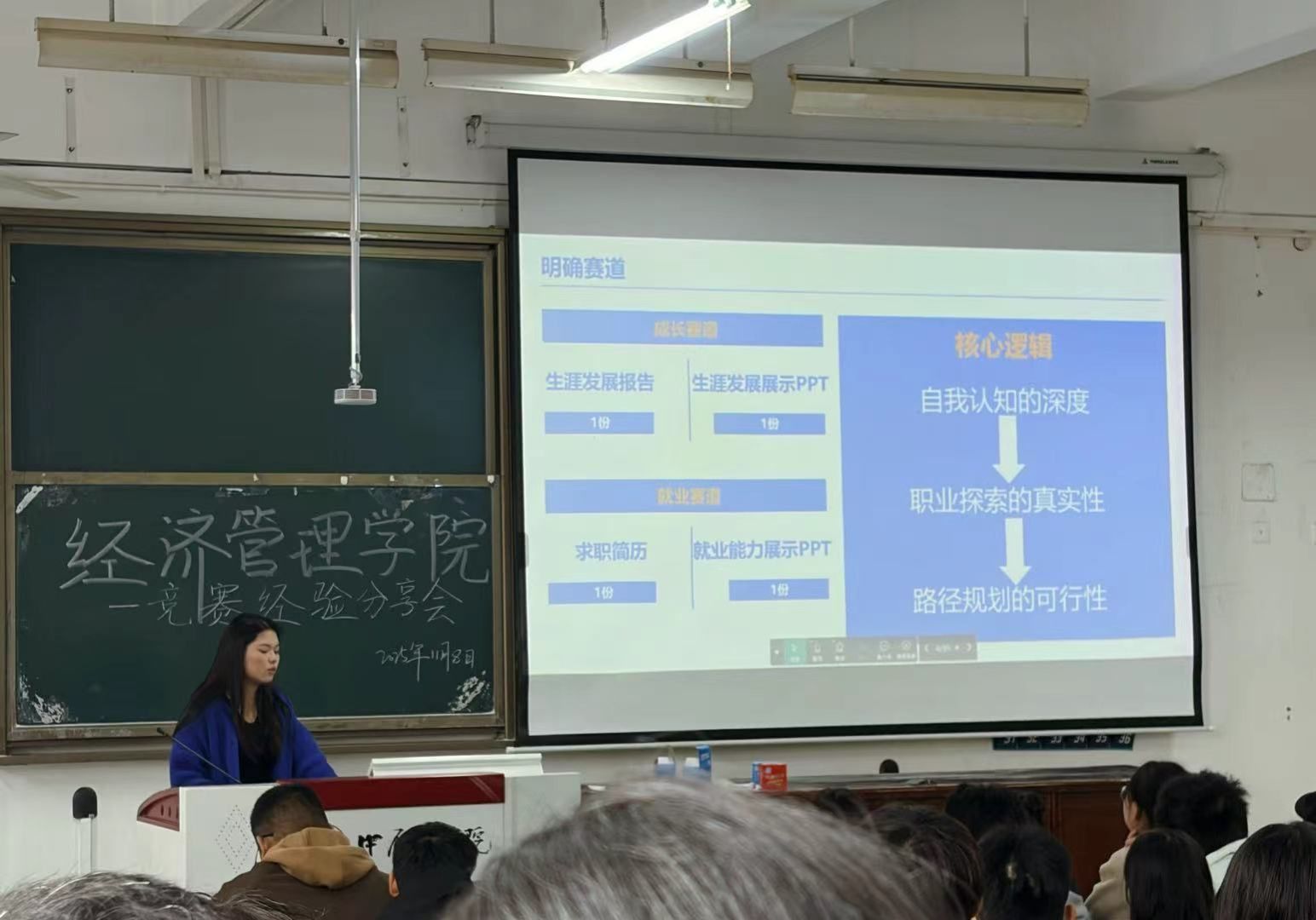 为帮助2025级新生掌握各类竞赛备赛技巧,提升个人竞争力,11月8日上午,我院在3号教学楼102教室举办竞赛经验分享会。会议由工商管理专业2022级杨廷知、工商管理专业2023级王天赐以及国贸专业2022级朱志强担任分享嘉宾,2025级共120余名学生参与。