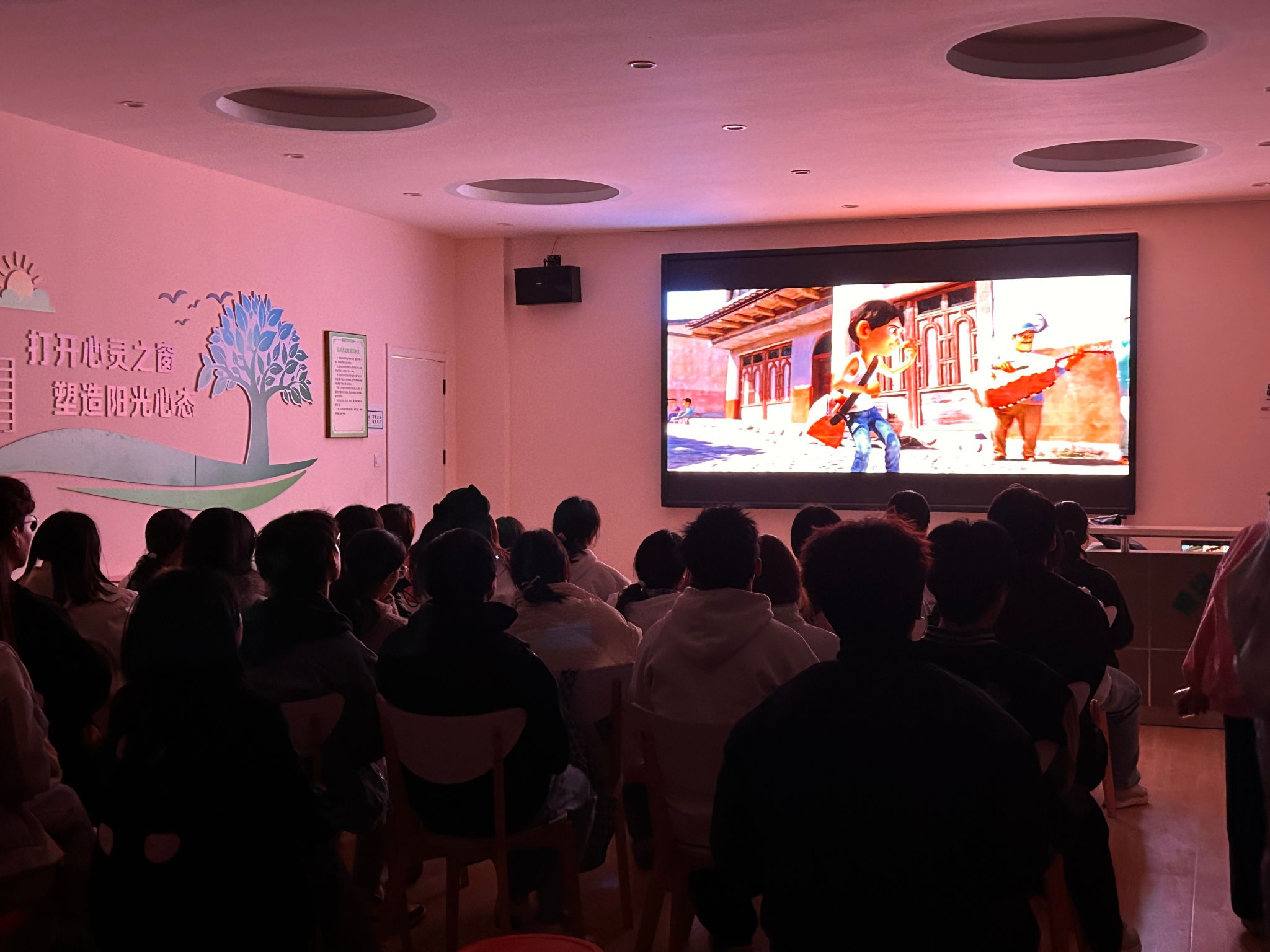 于2025年11月12日至13日晚在大学生心理健康中心108室成功举办两场心理主题观影活动。本次活动面向2025级全体学生,播放了《寻梦环游记》与《热烈》两部励志影片,风格迥异但主题相似,从不同维度诠释“成长”与“梦想”的内涵。以光影艺术为媒介,为同学们带来了一场温暖心灵、启迪思想的成长之旅。