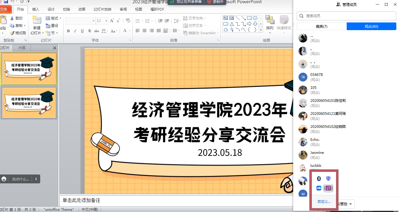 分别于2023年5月18日、5月19日在腾讯会议平台组织开展了考研经验分享交流会。