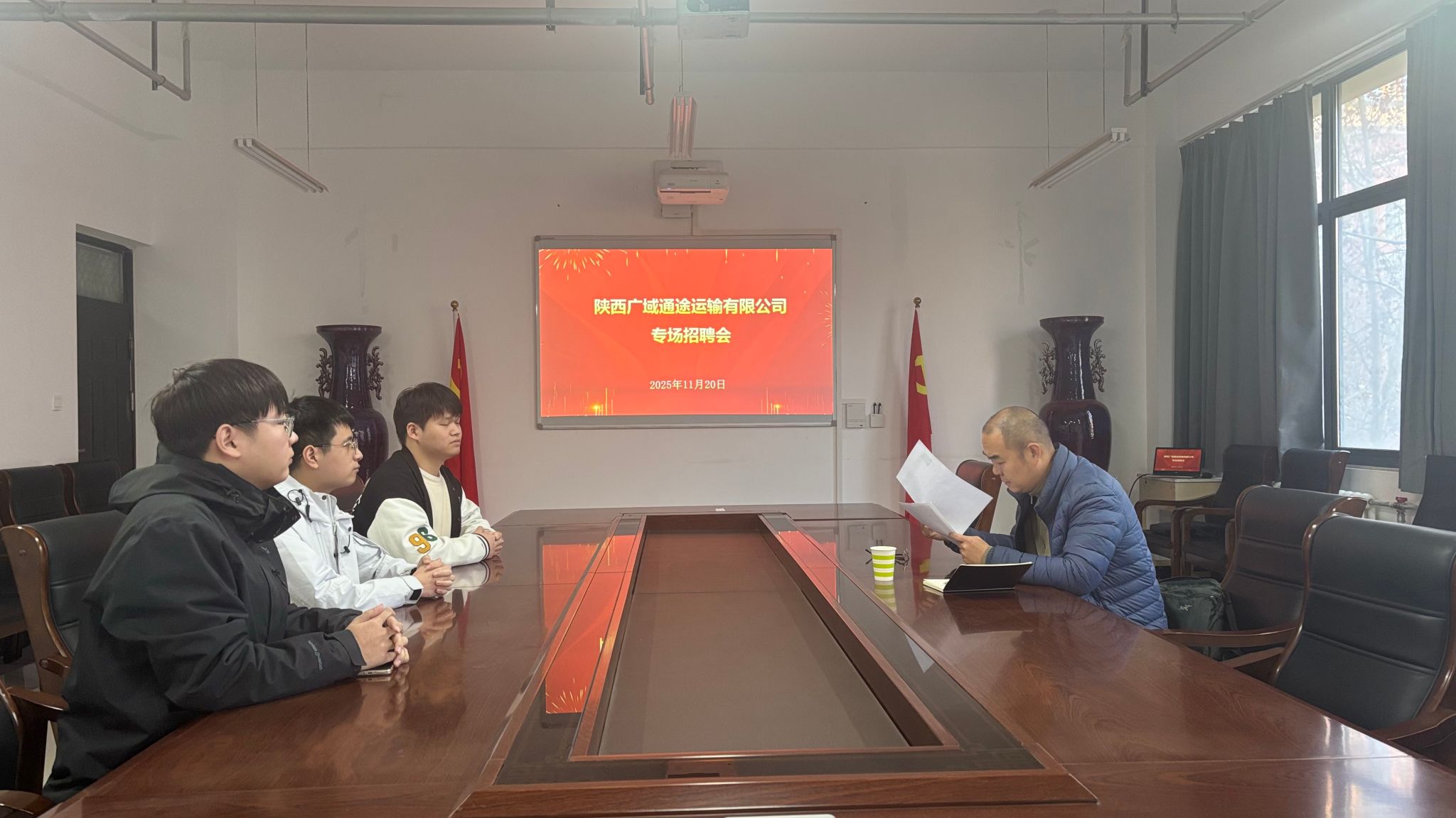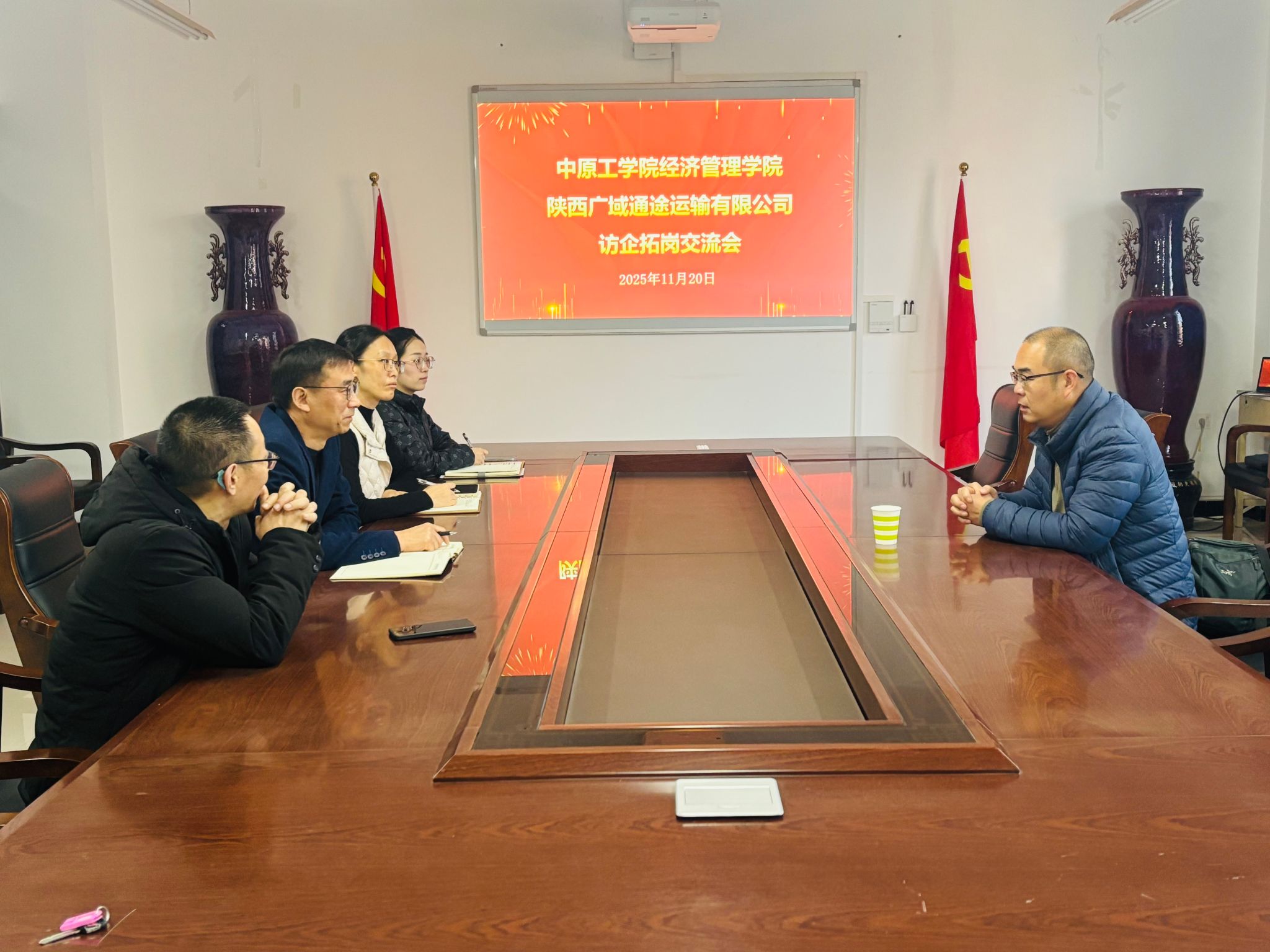与陕西广域通途运输有限公司在3号组团楼A306会议室成功举办访企拓岗交流会,并于交流会结束后进行了专场招聘会。陕西广域通途运输有限公司法人姚远,学院党委书记李向东、党委副书记王琳、物流工程系教师王小黎、2022级专职辅导员吴笑及2022级物流专业学生代表参加。